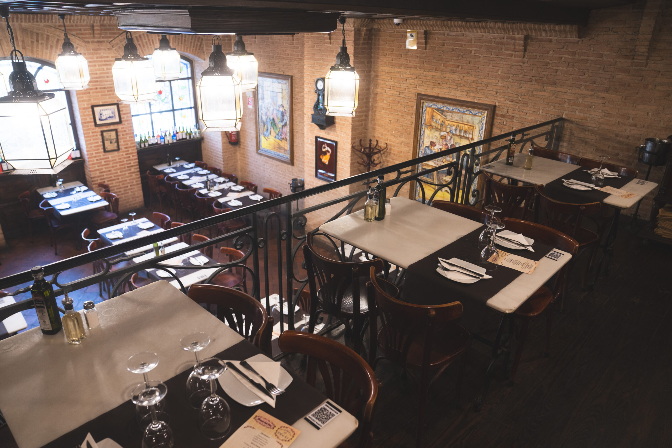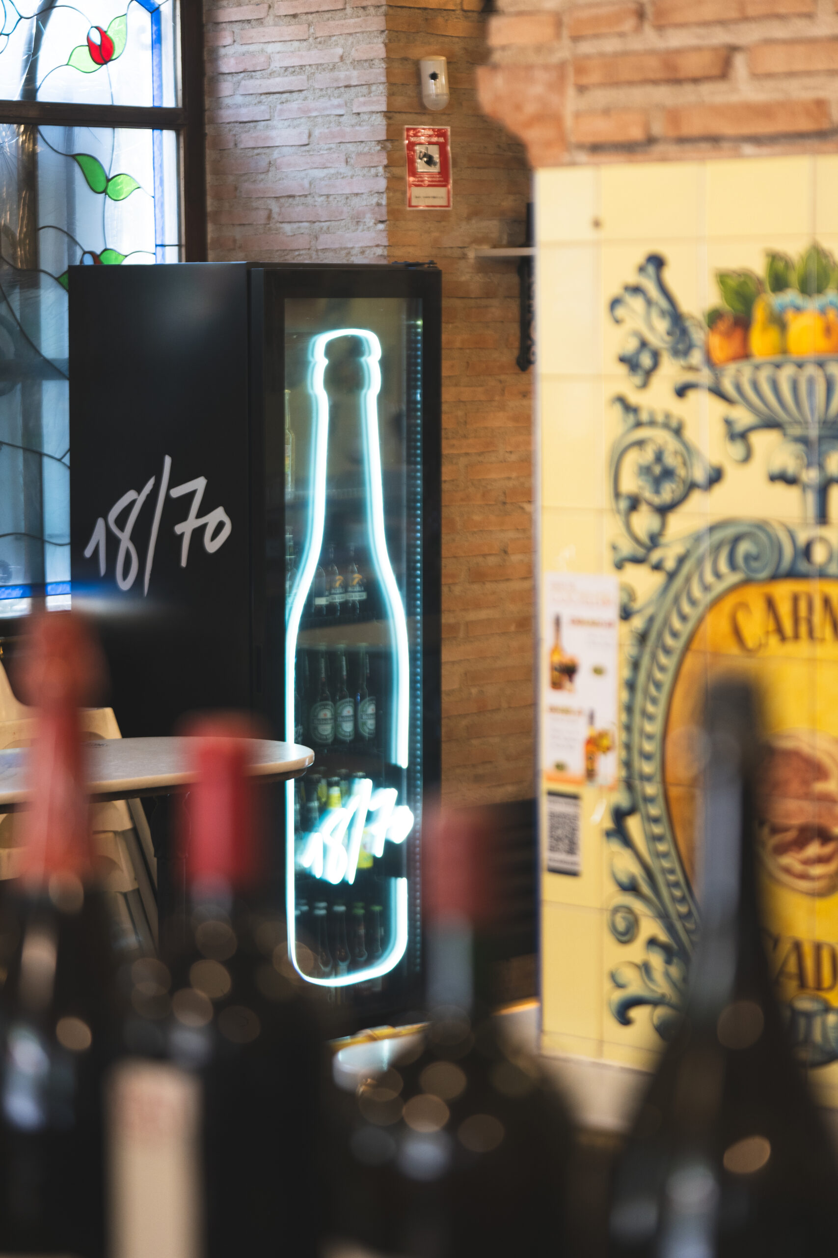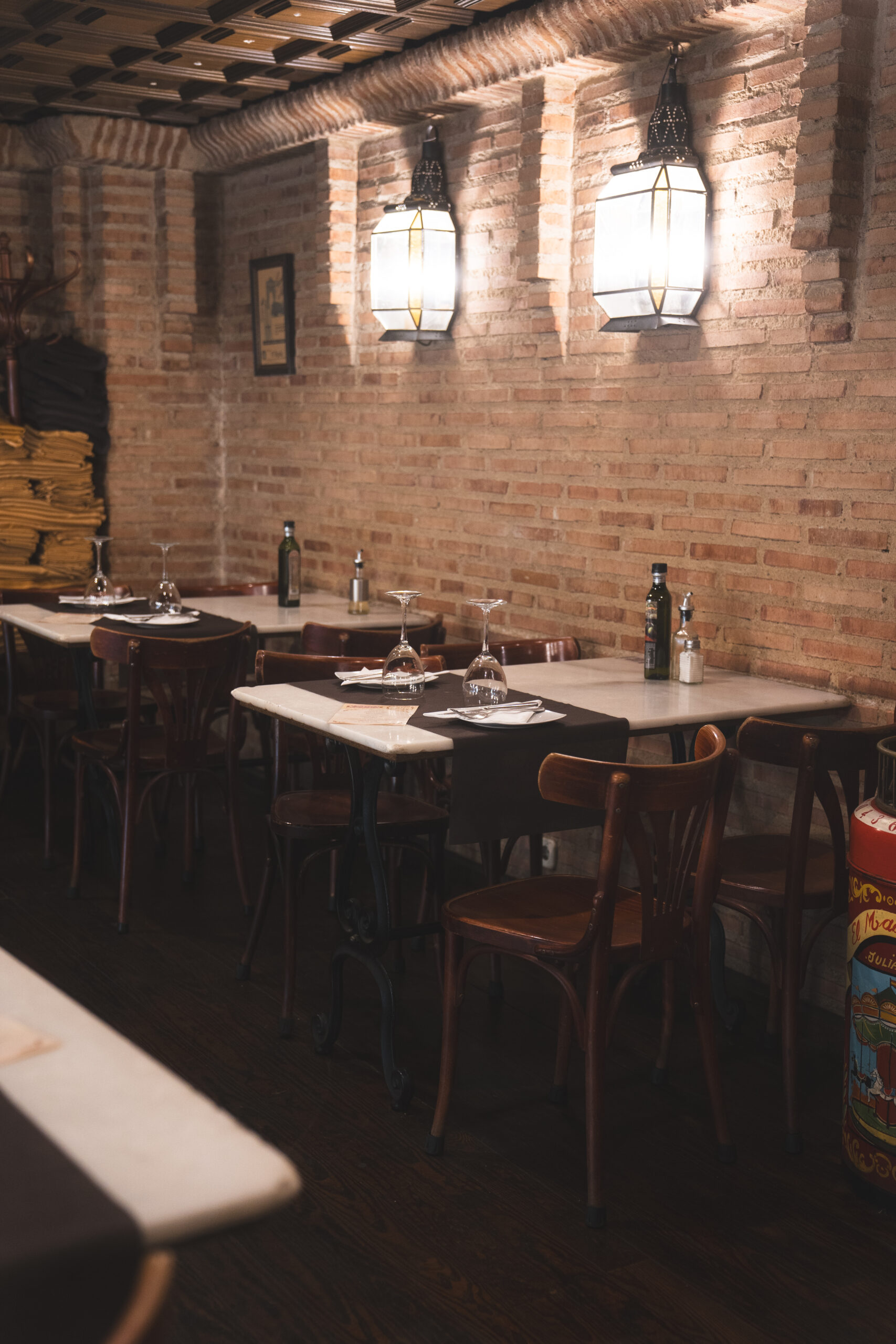 Un espacio amplio con una barra infinita, mesas altas para picar algo cómodamente y una decoración muy personal con frascas de licores y vidrieras de colores. Dispone de tres salones independientes con capacidad para 110 comensales, perfectos para cualquier tipo de evento o celebración.