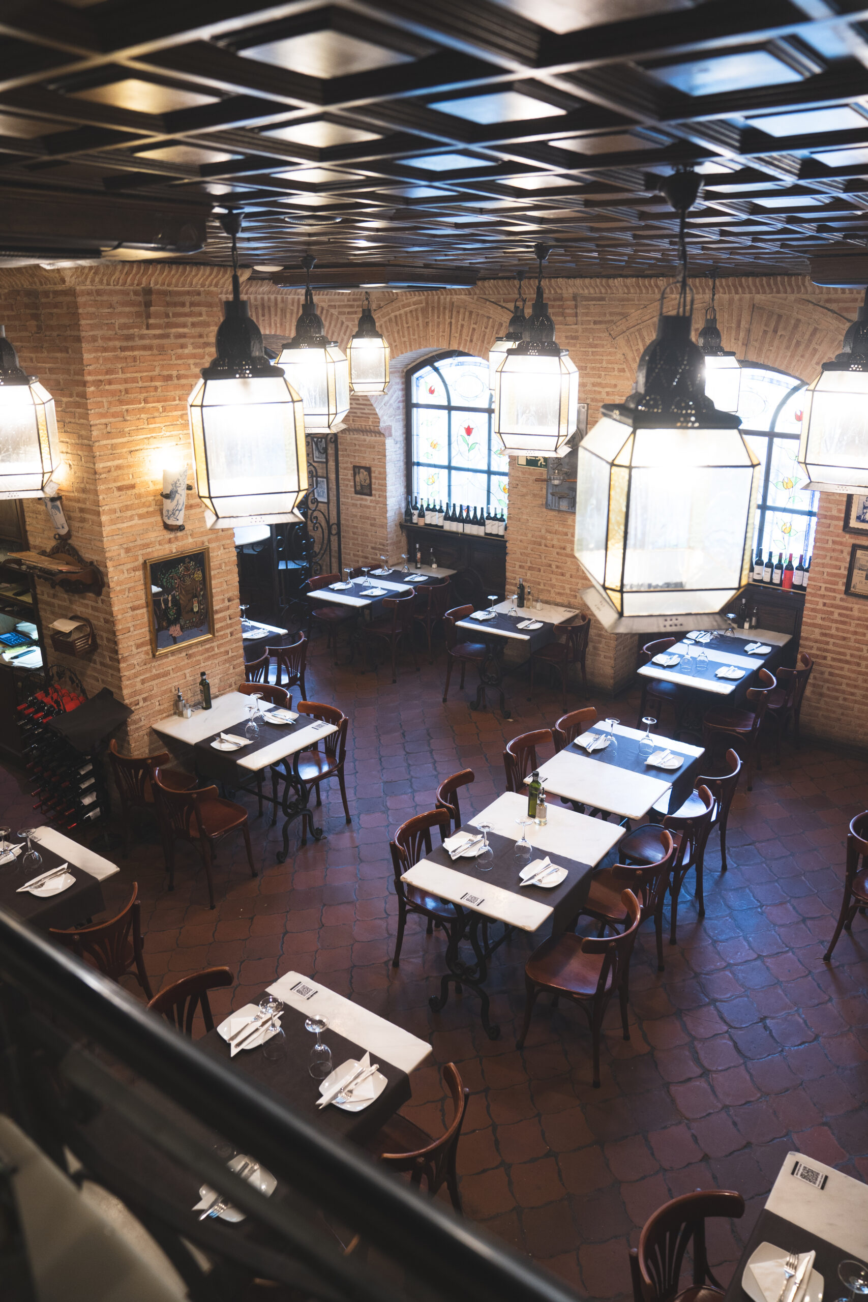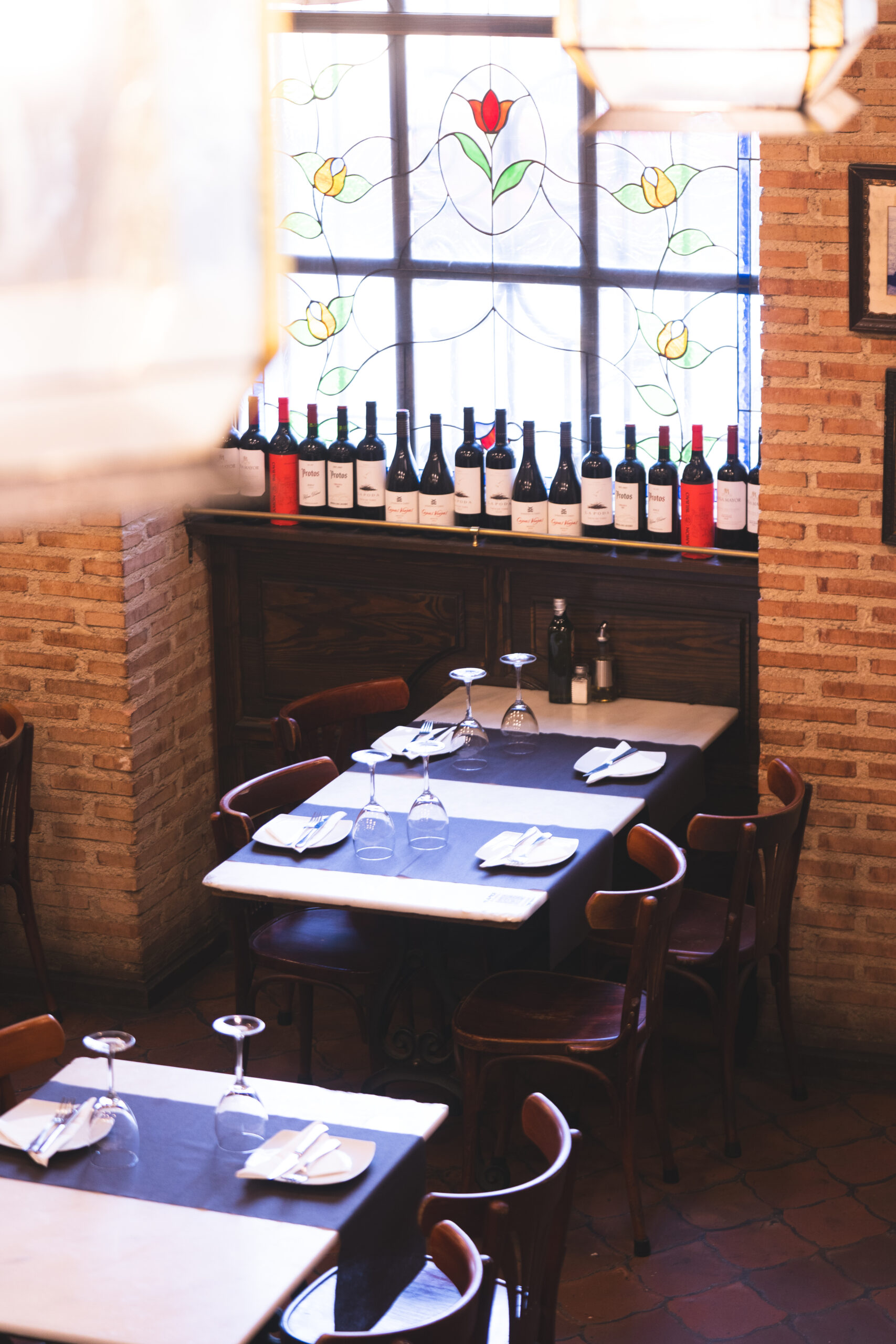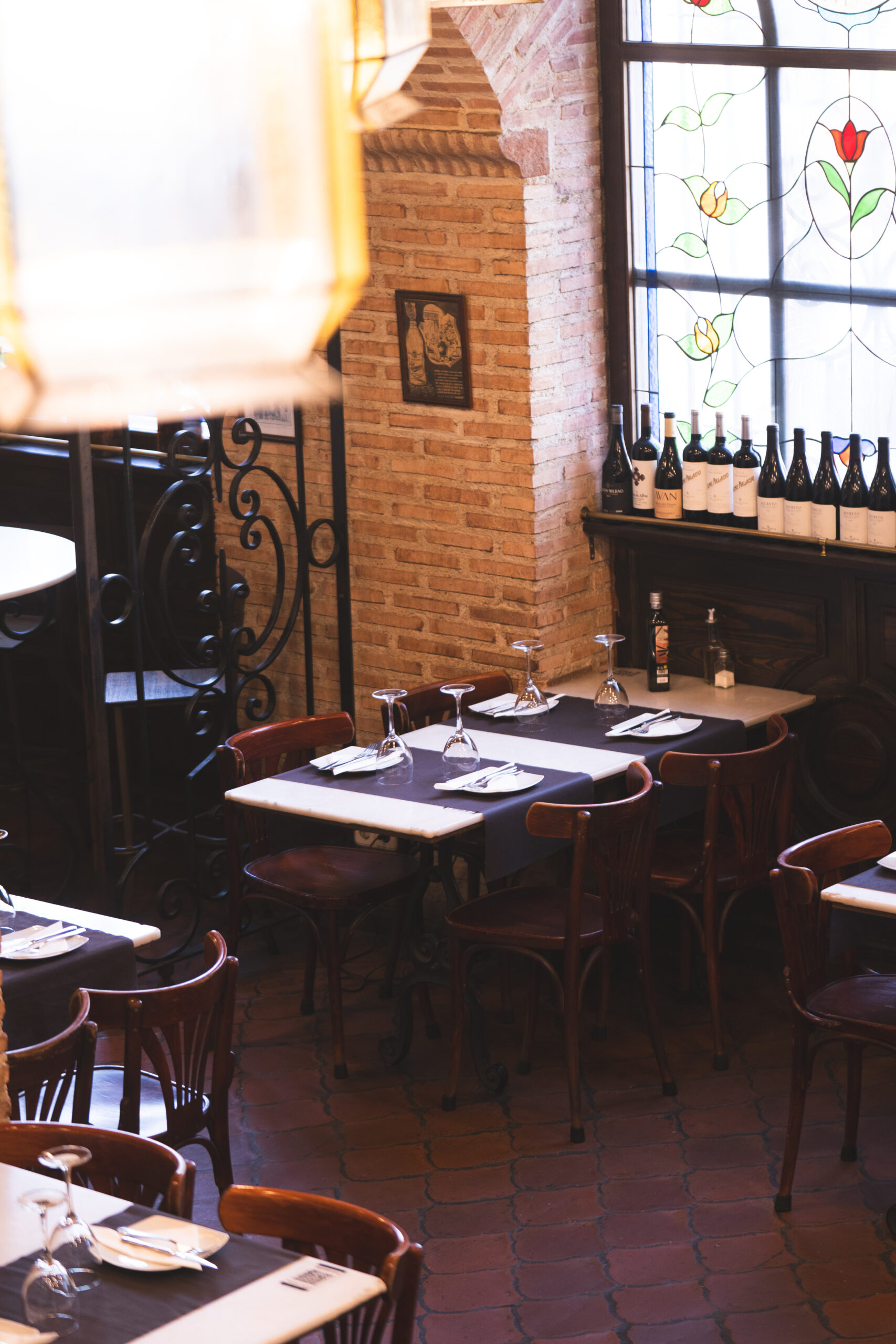 Un espacio amplio con una barra infinita, mesas altas para picar algo cómodamente y una decoración muy personal con frascas de licores y vidrieras de colores. Dispone de tres salones independientes con capacidad para 110 comensales, perfectos para cualquier tipo de evento o celebración.